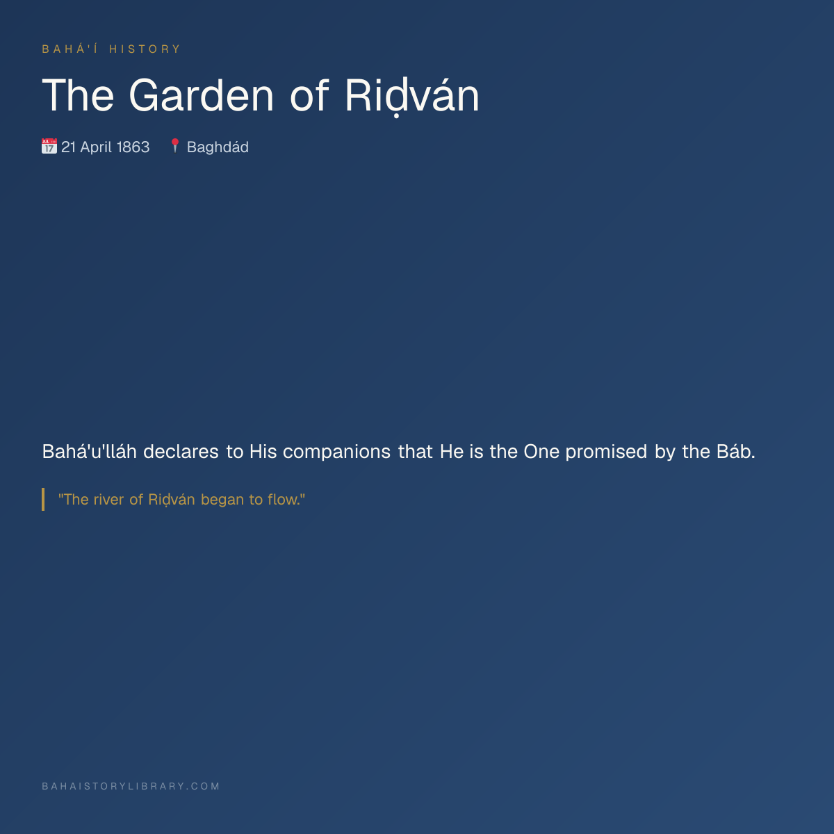 Bahá'u'lláh declares to His companions that He is the One promised by the Báb.